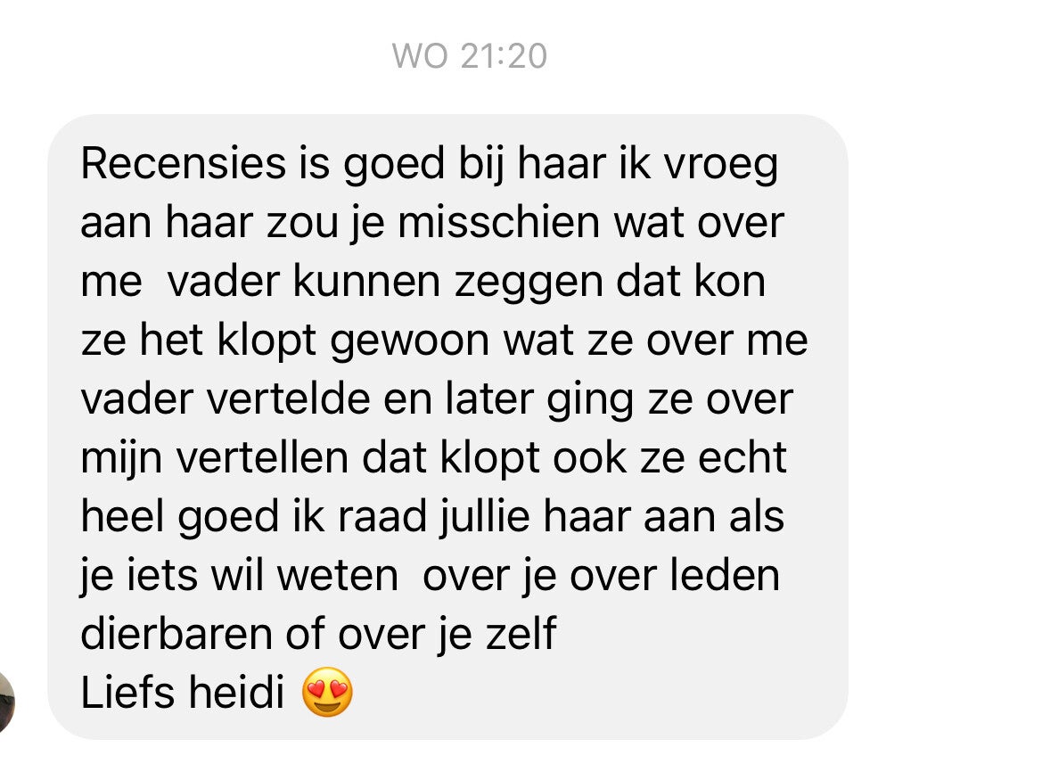 Let op, ik lees geen foto's van andere personen zonder toestemming van de andere persoon. Ik lees foto's van jou zelf of in dit geval van jouw overleden dierbare.