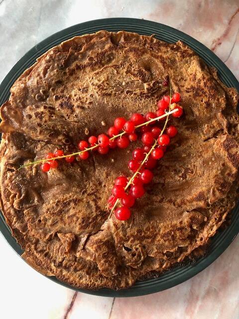 Zet het vuur op laag en draai de pannenkoek om als het beslag bijna gaar!! De pannenkoeken zijn heerlijk met vers fruit als aalbesjes, aardbeien, bramen, of plakjes banaan.
