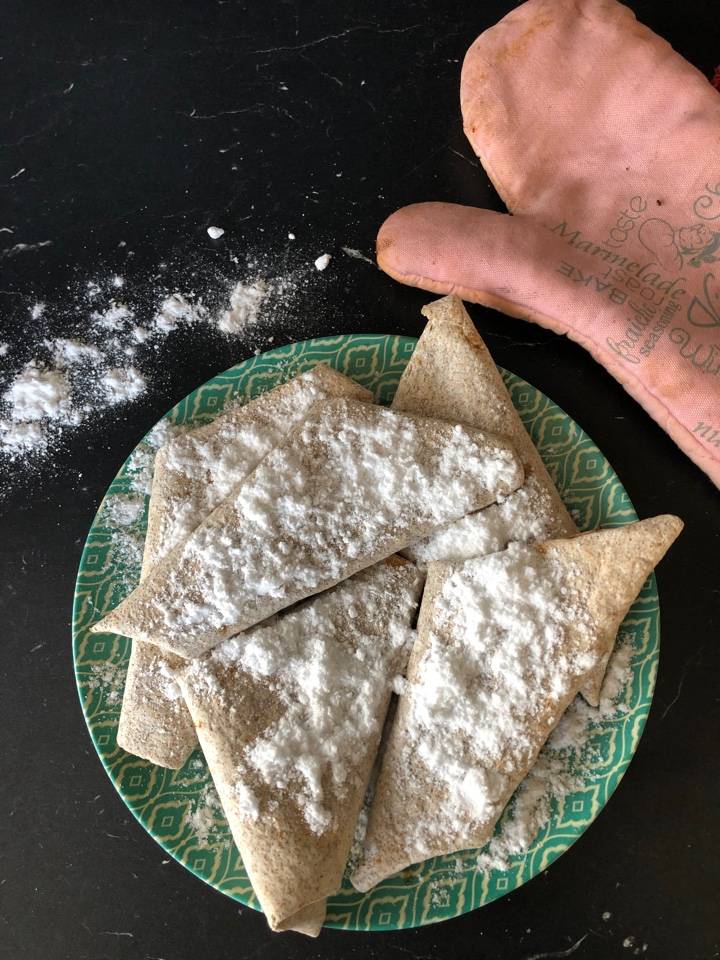 De healthy appelflappen mogen ongeveer 3-5 minuutjes in de oven, de wraps mogen zacht blijven dus hou de oven in de gaten!